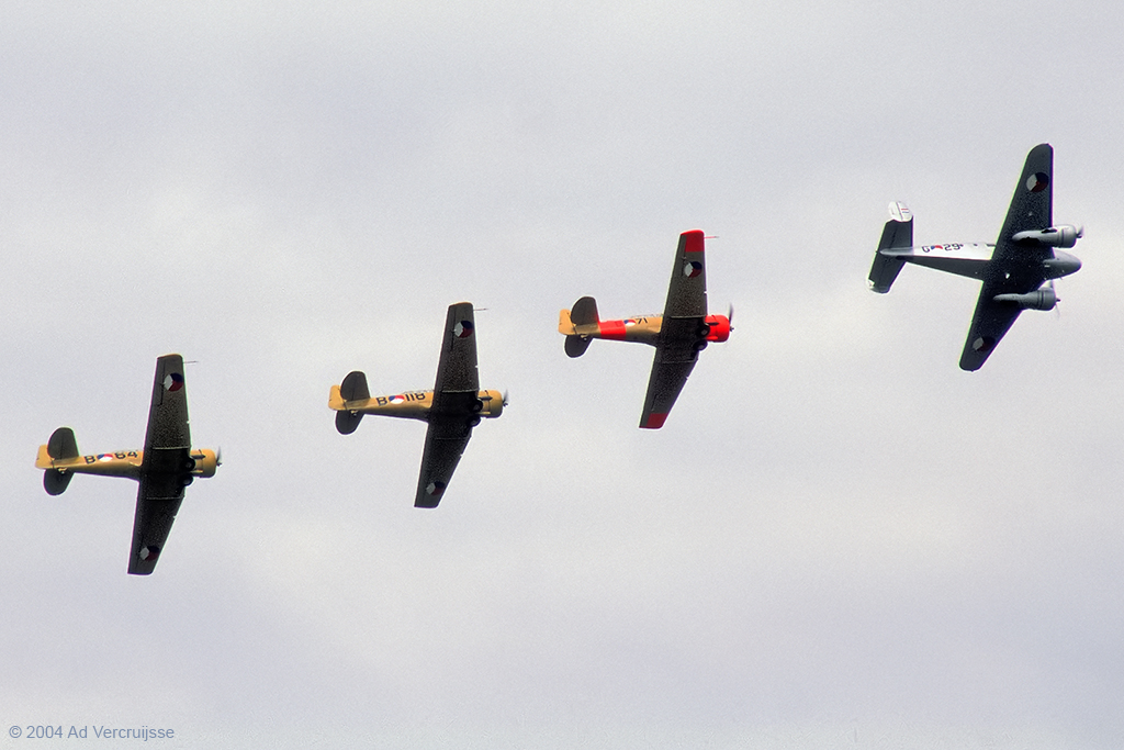 (with D-18S PH-KHV / "G-29" and Harvards PH-IIB / "B-118","PH-MLM / "B-71", PH-TBR / "B-182") |